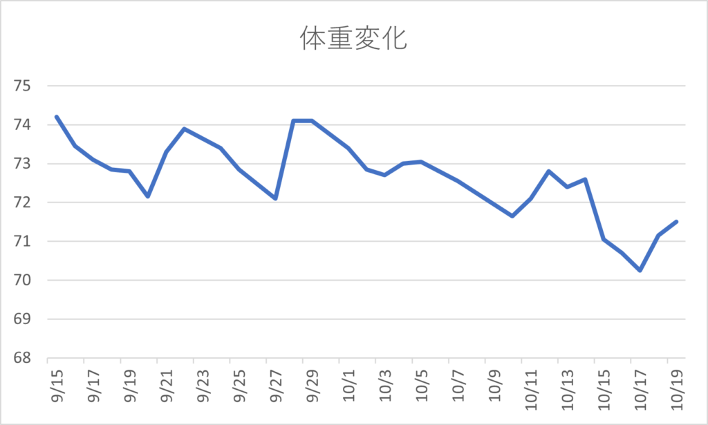 | ‘20/10/19 | 71.50 | 2.70Kgの減 |